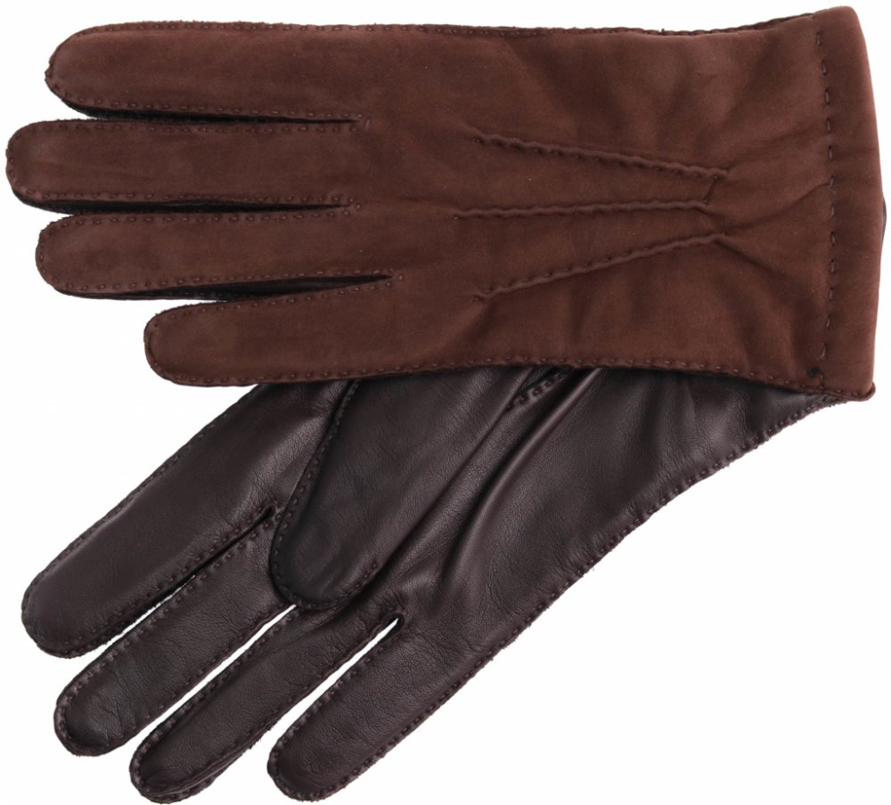 Špongr prstové pánské 100 % kůže kašmír hnědá