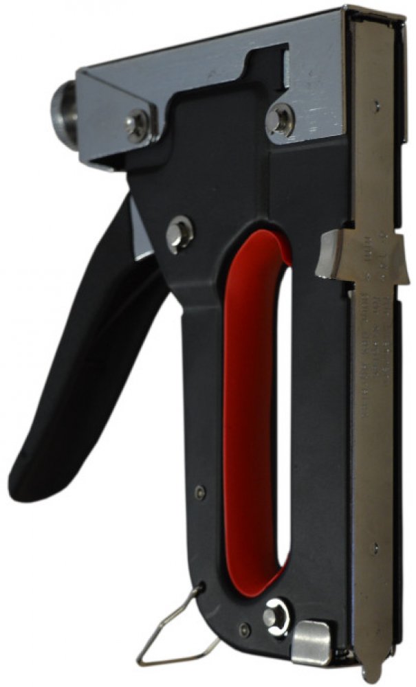 Sponkovačka s aretací pro snadnou a rychlou fixaci voliérového pletiva k dřevěné konstrukci.