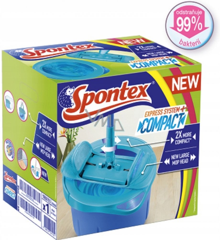Mop Spontex Express System + Compact přichází s vylepšenou technologií ždímání a kompaktnějším kbelíkem. Umývání podlahy se tak pro vás stane doslova drogou. Výměnný návlek z mikrovlákna dobře absorbuje vlhkost a zachytí veškerou nečistotu. Obrovskou výhodou je praktická pravoúhlá hlava mopu, se kterou se dostanete do každého koutu. Použití mopu je možné bez dalších čisticích přípravků. Ždímací sy...