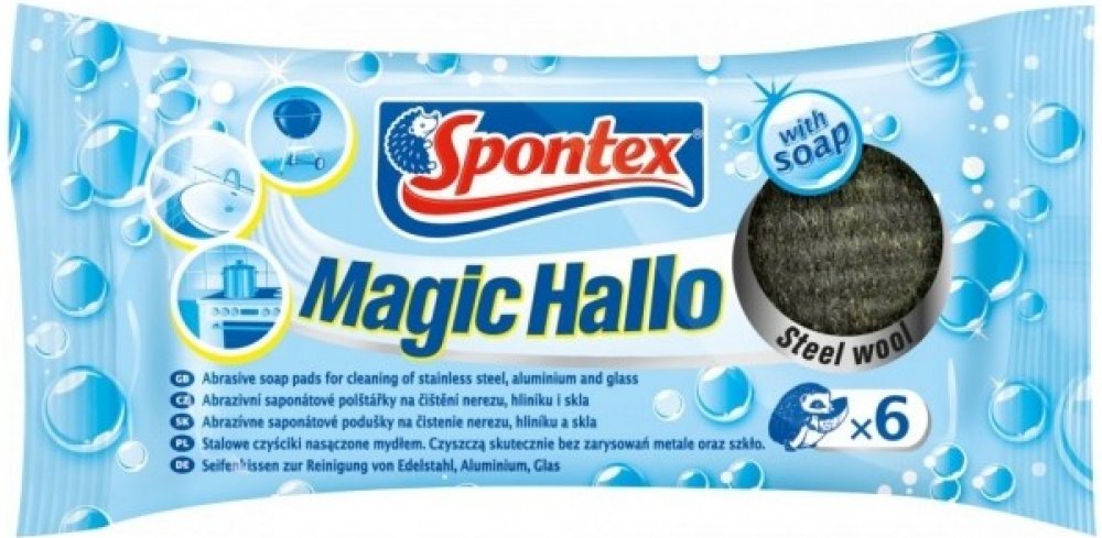 Saponátová drátěnka Spontex je vyrobena z velmi jemných ocelových vláken. Odstraňuje odolnou špínu jako jsou připáleniny na sporáku či v troubě. Drátěnka obsahuje čistící prostředek. Před použitím stačí pouze namočit. Balení obsahuje 6ks.