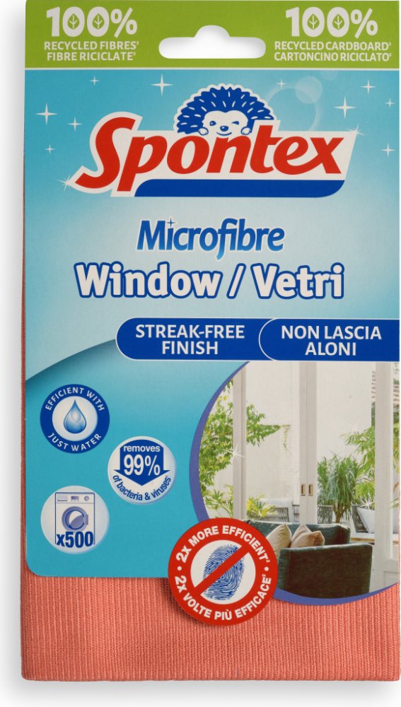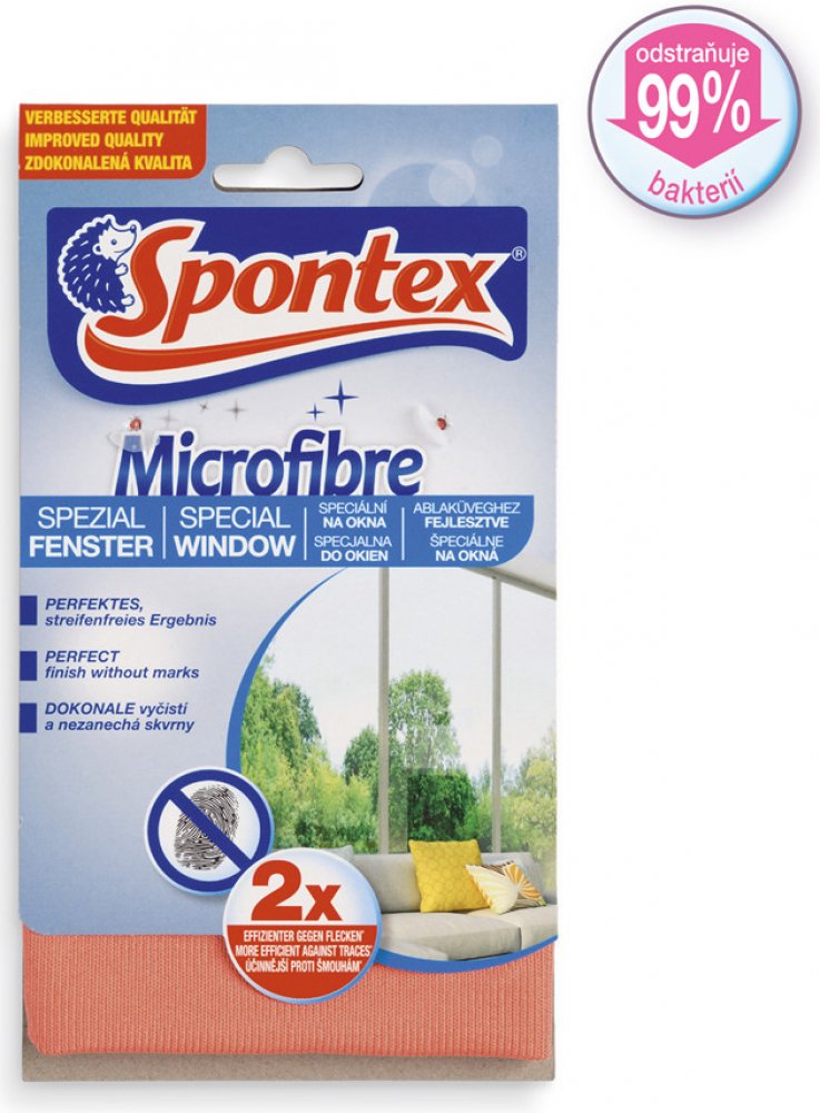 Objevte speciální utěrku z mikrovlákna Spontex Window pro perfektně vyleštěná okna beze šmouh! Díky svému ultrajemnému vláknu velmi účinně zachytí i ty nejmenší nečistoty na všech skleněných plochách. Klíčové vlastnosti Spontex utěrka na okna: 2x účinnější při stírání vody a mastnoty než utěrka ze 100% bavlny. Odstraňuje otisky prstů. Velmi jemná textura pro efektivní pohlcení nečistot. Tipy pro použití: Díky své velmi měkké struktuře je utěrka vhodná i na ty nejjemnější povrchy. Ideální na okna, skleněné stoly, zrcadla, obrazovky a další. Utěrka může pouštět barvu nebo zanechat skvrny, proto ji před použitím vyzkoušejte na malé ploše.