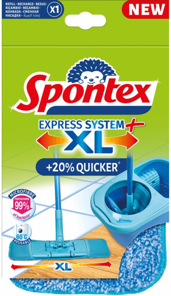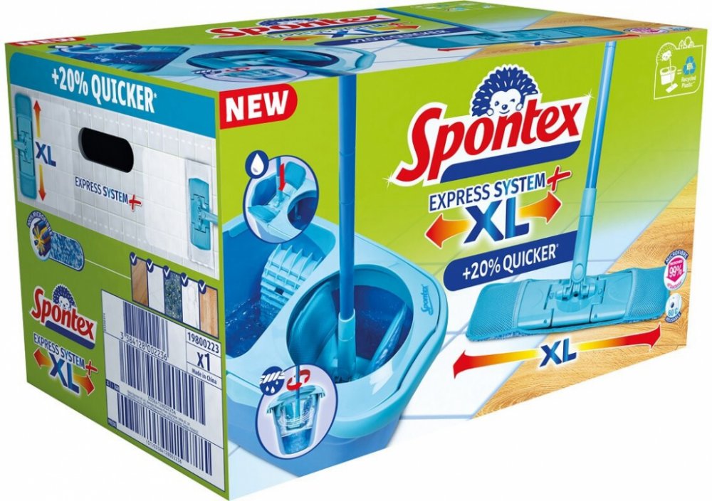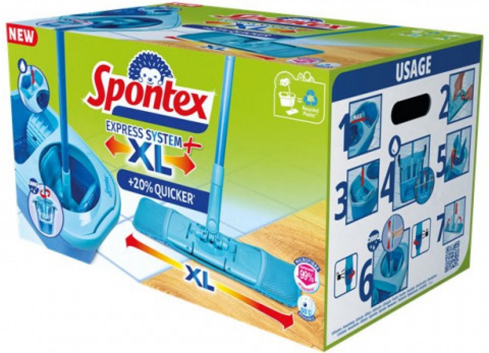 Spontex Mop Express System Plus přichází s vylepšenou technologií ždímání. Stačí mop nasadit na trn a pohybem rukojeti aktivovat odstředivý 360stupňový mechanismus. Tento způsob ždímání mop také zbaví veškerých nečistot jako chlupy a vlasy, které se na něm během úklidu zachytí. Návlek mopu je vyroben z kvalitního mikrovlákna, proto je Spontex Express Systém účinný i bez použití čistících prostředků. Stačí čistá voda a poradí si se všemi typy podlah. Tvar hlavice zase zajistí, že mu neunikne ani špína v rozích a podél zdí. Plochý systémový mop s větší hlavou pro rychlejší úklid. Náhrada ze 100% mikrovlákna. 65% výrobku vyrobeno z recyklovaného plastu. Pratelné na 60°C. Nepoužívejte aviváž a bělidla. Odstraňuje 99% bakterií. Mop je vhodný pro všechny typy podlah.