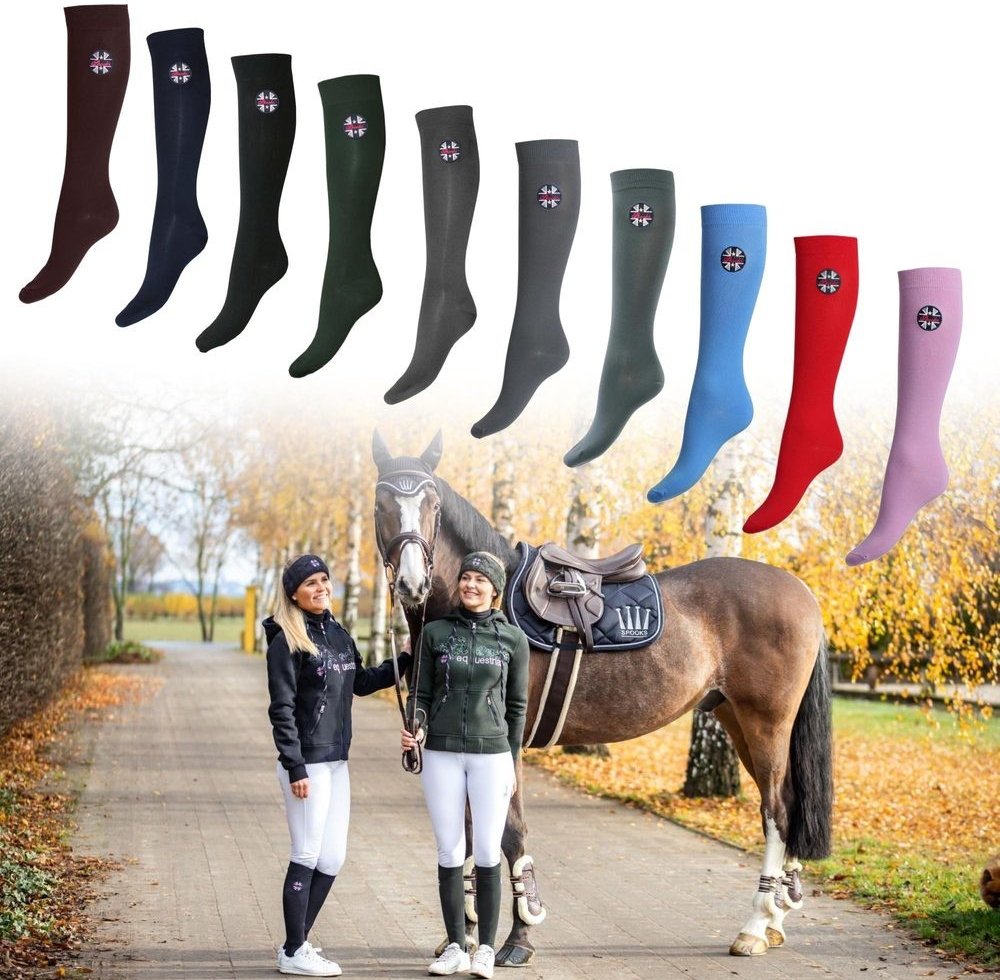 Pohodlné jezdecké podkolenky, které skvěle doplní váš outfit. Velmi dobře sedí pod vysokými jezdeckými botami. Zdobí je logo SPOOKS.