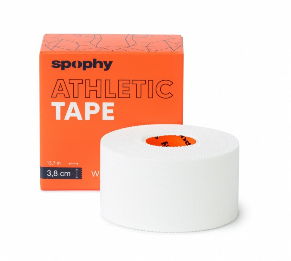 Spophy Athletic Tape o rozměru 3,8 cm x 13,7 m je vysoce kvalitní fixační tejp poskytující podporu oslabeným, zraněným nebo nestabilním částem těla. Profesionální sportovní terapeuté, oceňují zejména snadné odvíjení pásky, její přilnavost a délku téměř 14 metrů, ale také vroubkovaný okraj, umožňující snadné odtržení. Spophy Athletic Tape je nebělený a bez latexu, takže je šetrný k pokožce.