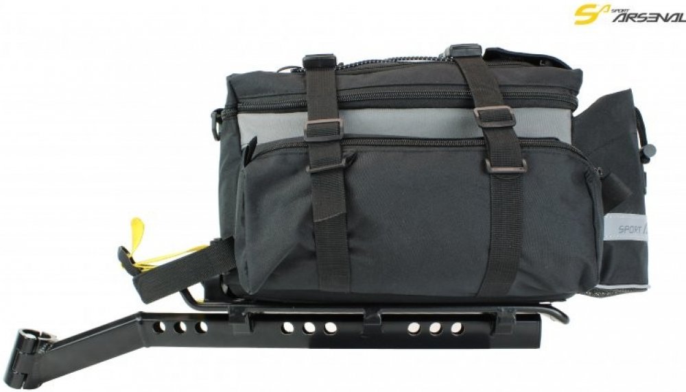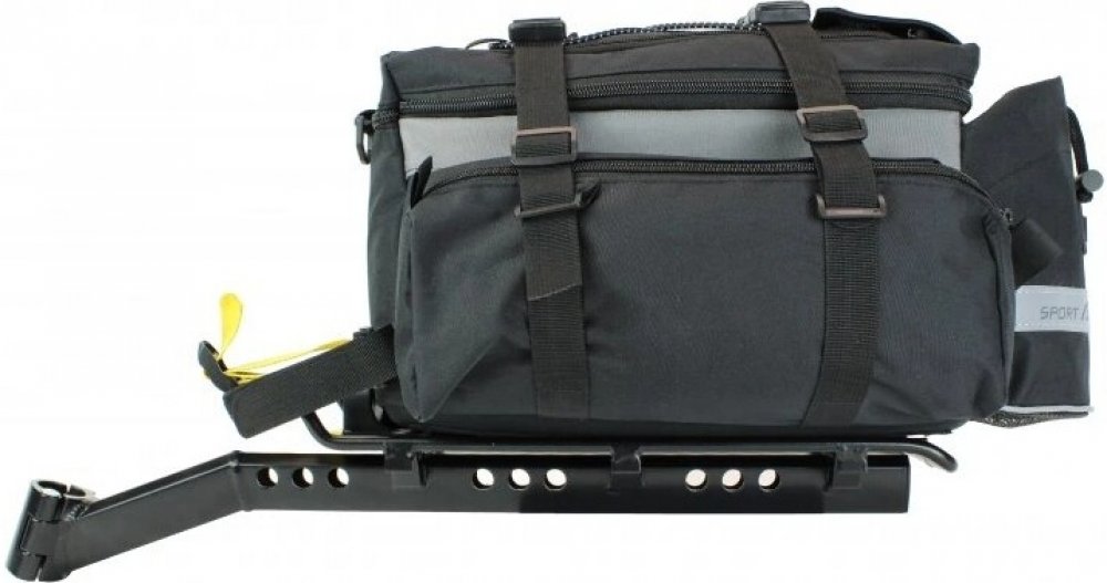 Akční set brašny art.450 a nosiče pod sedlo art.263 na kola menších rámů ve velikosti XS a S pro převoz lehčích nákladů. Originálním QuckFix systémem přináší rychlé a spolehlivé uchycení brašny k nosiči. BRAŠNA brašna má jednu velkou vnitřní a dvě postranní vnější kapsy, uzavíratelné zipem, pro praktické rozložení nákladu kompresní popruhy pro fixaci nákladu pevné dno brašny s originálním QuickFix systémem pro rychlé upnutí a dobrou stabilitu gumicuk pro připevnění dalšího nákladu kapsa pro cyklistickou láhev reflexní prvky popruh pro přenášení brašny na rameni návlek proti znečištění NOSIČ uchycení nosiče na sedlovku pomocí dělené objímky - rychloupínáku nosič je přizpůsoben pro montáž na sedlovky o průměru 25,4 - 32 mm nosič není vhodný na sedlovky z uhlíkových kompozitů! na nosič lze použít i samostatně na brašeny jiných značek, plnou kompatibilitu však nelze zcela zaručit výrobek prošel zkouškami na speciálním testovacím stroji podle norem DIN Hmotnost: 1.64 kg Materiál: Vodovzdorný Objem: 7 l - 18 l Barva: Černá Materiál nosiče: Hliník VELIKOST KOLA: 24", 26" - 28", 29" Nosnost nosiče: do 8 kg