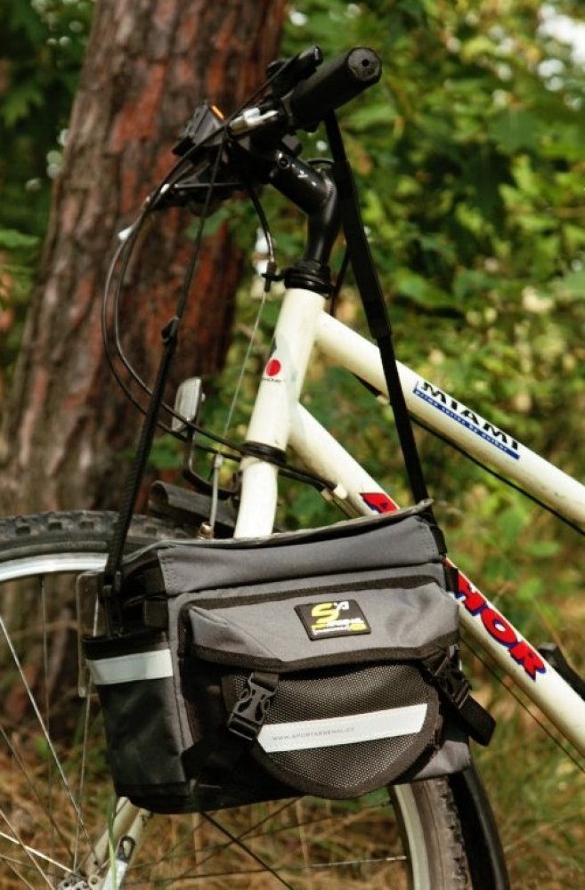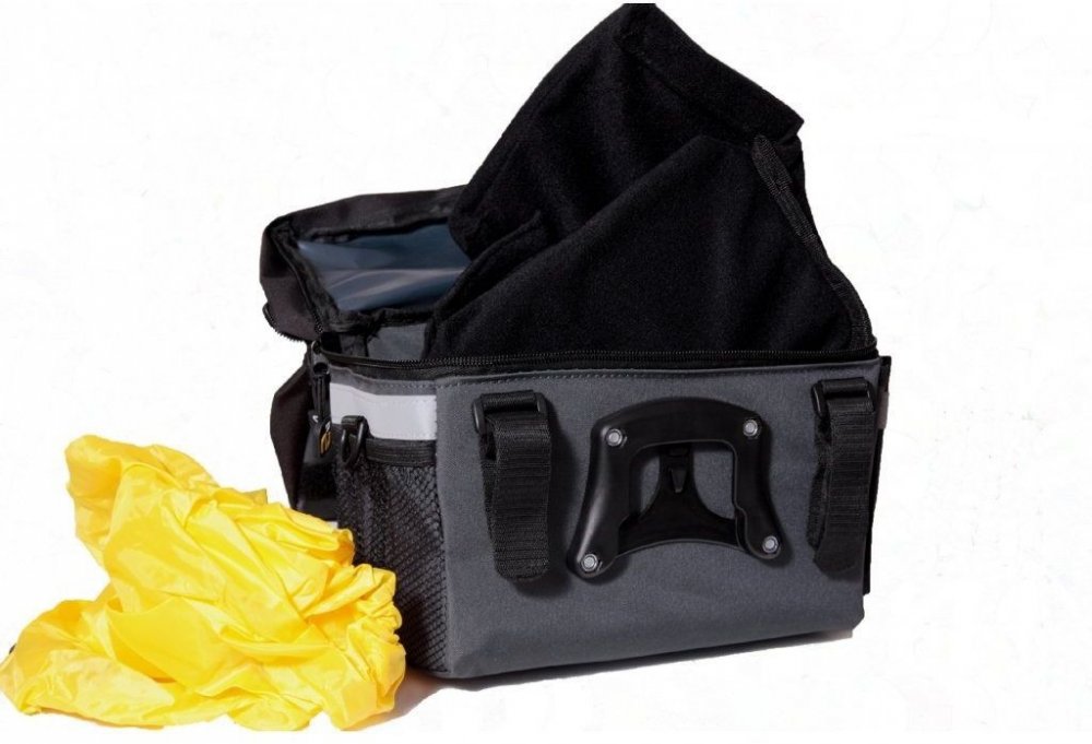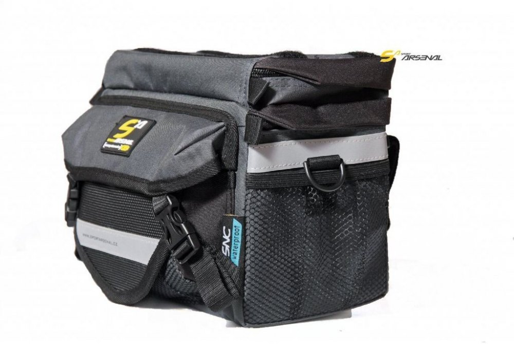 Řidítková brašna s vnitřní polstrovanou vložkou pro rozdělení převáženého nákladu, nebo na foto-techniku. Plastová výstuhu obvodu brašny zaručuje trvale pěkný tvar brašny, zároveň ochrání obsah brašny při nečekaném pádu brašny na zem. Dvě vnější postranní kapsy - jedna síťovaná, druhá látková - slouží pro převoz svačiny a lahve s pitím. Nad velkou hlavní komorou po rozepnutí zipu můžete objevit p...