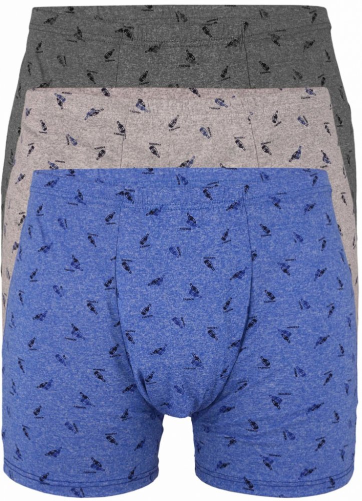 Klasické boxerky Kamil jsou určeny pro statnější muže, kteří shánějí prádlo pro každodenní nošení. Díky drobnému potisku není design boxerek fádní. V balení po 4 kusech, které ušetří čas strávený nakupováním. Boxerky s klasickou krátkou nohavičkou Nohavičky vybaveny pružným lemem, který stehno nesvírá V pase všitá guma o šíři 2 cm Přední díl je uprostřed podšit druhou vrstvou látky pro váš komfortnější pocit Potisk v podobě party lahví a nápisů FASHION Mix barev v balení je náhodný, sestává z oblíbených modrých, šedých a tmavě šedých odstínů barev Materiálové složení: 60 % bavlna 35 % polyester 5 % elastan