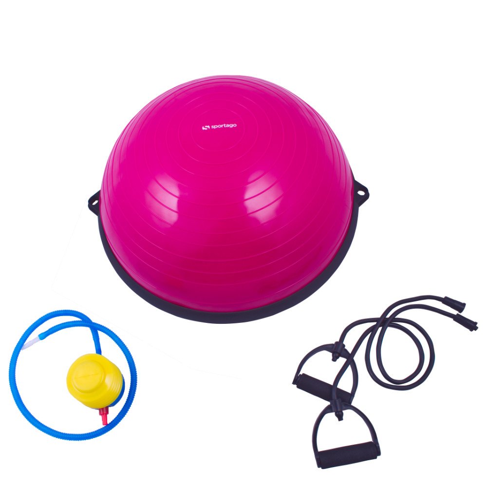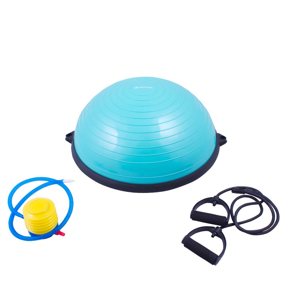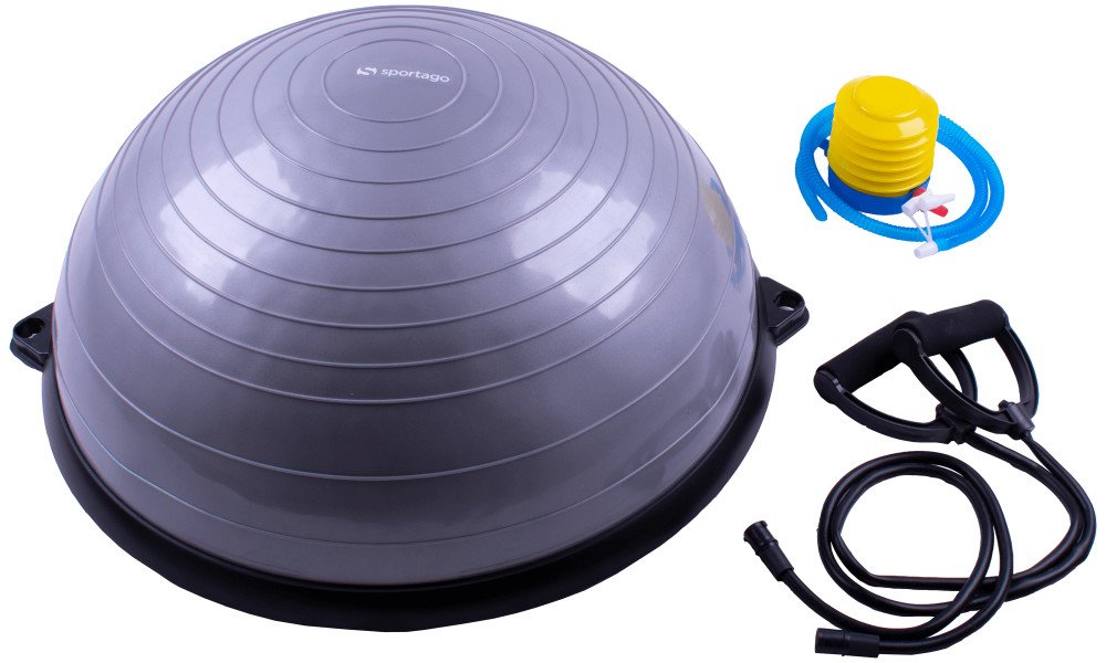 Balanční podložka Sportago Balance Ball je nejen výjimečná svým využitím, ale i provedením. Je vyroben z odolného PVC materiálu a jeho pevnou základnu tvoří tvrzený plast. Součástí jsou i dvě odnímatelná gumová táhla zakončená ergonomickou rukojetí zajišťující maximální pohodlí během cvičení.