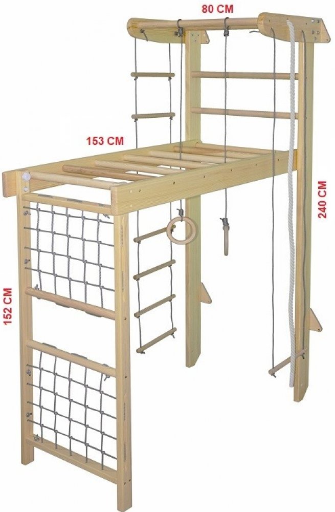 - Bočnice (žebřiny, vodorovné žebřiny, šplhací síť, hrazda): borovice