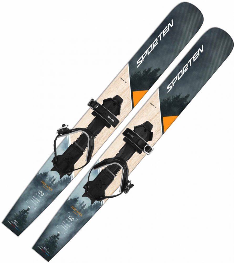 Snežnice/skialpové lyže Sporten Free Walk - sněžnice s ocelovými hranami pro všechny, co se chtějí odvázat v hlubokém prašanu a při toulkách přírodou se občas i svézt. Tato lyže má v části skluznice pevně integrovaný skin, který způsobuje to, že při pohybu vám lyže krásně klouže a dozadu vás nepustí. Výhoda Free walk lyží je hlavně v tom, že nahoru jdete jako na snežnicích a dolů se můžete sklouno...