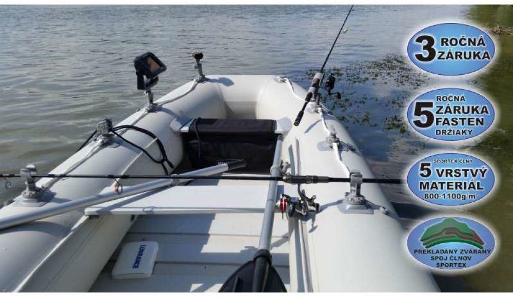 Člun vyznačující se extrémně velkým vnitřním prostorem s lamelovou podlahou se speciálními univerzálními úchyty na různé příslušenství jako je například sonar, telefon, držák prutů, ale i mnoho dalších zařízení.|Člun s úchyty FASTEN - Sportex Shelf lamelová podlaha