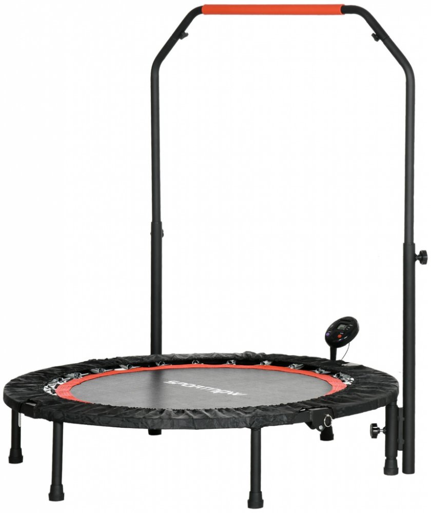 Neuvěřitelně efektivní a jedinečně kompaktní: tato praktická mini trampolína od společnosti SPORTNOW zaručuje efektivní trénink, při kterém se zapotíte a spálíte spoustu kalorií! Posílíte jádro těla, zlepšíte rovnováhu a zlepšíte držení těla téměř bez námahy. Trampolína má robustní ocelový rám, unese až 150 kg a je vybavena praktickou, výškově nastavitelnou rukojetí. Protiskluzové gumové nožičky navíc chrání vaši podlahu. Popis: ● Čtyřstupňová nastavitelná rukojeť poskytuje oporu při skákání ● Dvojité skládání, zmenšení velikosti na 1/4 ● LCD monitor umožňuje sledovat výsledky tréninku v reálném čase ● Díky podložkám na uchopení a gumovým nožičkám je trampolína protiskluzová a bezpečná ● Ocelový rám a šest robustních nohou zvyšují stabilitu ● Snadná montáž je nutná Technické údaje: Trampolína je vybavena dvěma držadly, které umožňují trénink: ● Barva: černá+červená ● Materiál: ocel, PP, Oxford (100% polyester) ● Celkové rozměry: Ø102 x 99-123H cm ● Rozměry při skládání: 73L x 36W x 8H cm ● Skákací podložka: Ø75 x 24H cm ● Šířka krytu rámu: 15 cm ● Délka rukojeti: 96 cm ● Délka polstrování rukojeti: 50 cm ● Nosnost: 150 kg Rozsah dodávky: ● 1 x fitness trampolína ● 1 x návod k použití