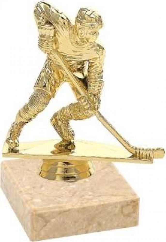Sportovní figurka hokejisty na mramorovém podstavci s možností štítku.