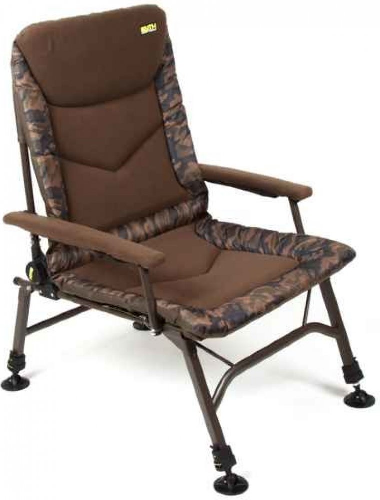 Luxusní Křeslo s polstrování područkami vyrobeno z lehké oceli robustní konstrukce. Na dotek příjemný měkký flís na sedací a opěradlové části zaručuje absolutní komfort i při dlouhodobém sezení a čekání na rybu. Křeslo je vybaveno na individuální přestavitelnými nožičkách fixním mechanismem a bahenní koncovkou pro přizpůsobení ke každému terénu. Je velmi lehké 8kg s nosností 120kg.