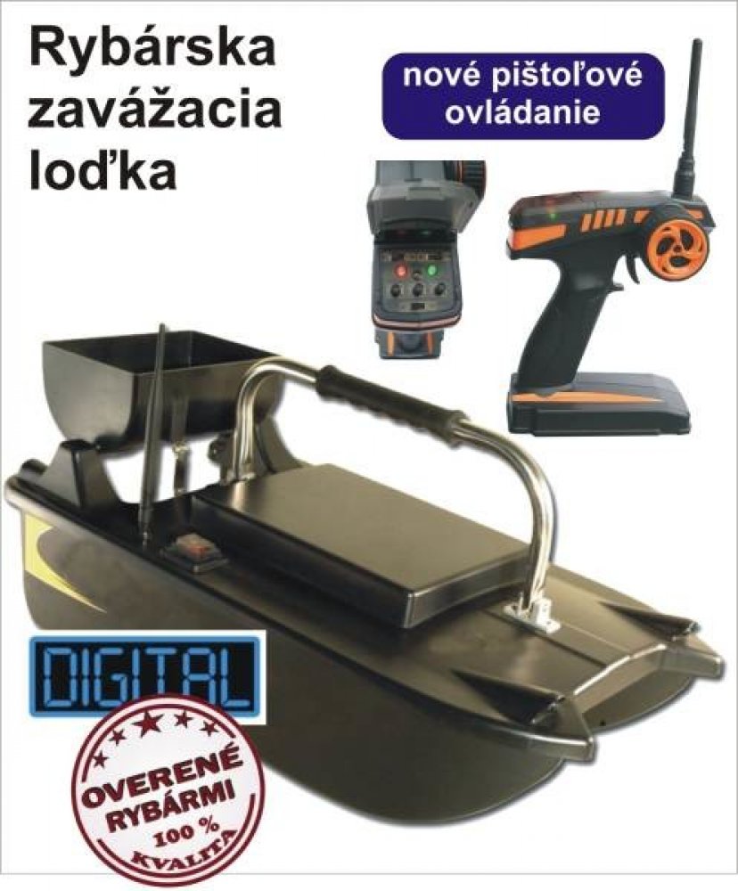 Zavážecí a zakrmovací loďka BL (Revoluční ovládání jednou rukou) - nejlevnejsi Zavážecí lod pro rybářů Tento model zakrmovacího člunu je standardem pro každého kapraře !!! Konečně je na trhu Zavážecí loďka, kde jednou rukou držíte rybářský prut a druhou rukou plnohodnotné ovládáte pohyb loďky (pohyb vpřed, pohyb vzad, doprava, doleva, vyklápění). Je spolehlivá a vysoce kvalitní. Prostě vždy dobře poslouží! Trup je vyroben z pevného a odolného materiálu a elektronika je velmi kvalitní. Motory mají malou spotřebu, zajišťuje delší dobu člunu na vodě. Je řízený vrtulí a garantovaná dojezdová vzdálenost od břehu je 350 m. Zavážecí loďka BL je dodávána opravdu jako kompletní set! Obsahuje člun, dálkové ovládání, baterie do člunu, dálkové ovládání a nabíječku. Excelentní krmný člun za extrémně výhodnou cenu! Nyní ještě mnohem spolehlivější a výkonnější s novým 2,4GHz digitálním čipem. Zavážecí loďka BL DIGITaL: DIGITaL - digitální kódování signálu z toho vyplývá - větší dosah (kvalitnější spojení loďky a ovladače) - odolnost vůči rušení - minimalizování směšovací frekvencí - odolnost vůči vzájemnému ovlivňování podobných zařízení (vůči druhé loďce, ...) Rozměr: D: 68cm, Š: 32cm, V: 33cm Popis: - dosah až do 500m (závislé na povětrnostních podmínkách) - světla vpředu (bílé) - světla vzadu (modré) (snadná identifikace pohybu loďky) - váha 5,3kg - nosnost 1,5kg - vrtulový pohon - elektronický ovladač - adaptér na dobíjení - adaptér na 230V / 12V - zdarma akumulátor 12V / 7,2ah Možnost dokoupení náhradních akumulátorů.
