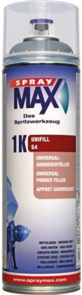 1K Akrylový plnič ve spreji SprayMax plnič se velice snadno nanáší , má dobrou přilnavost , excelentní povrch a možnost zbroušení , především při broušení za mokra. Je mimořádně vhodný na probroušená místa . Vytváří vysoké krycí vrstvy (2x 90qm) a velice rychle schne (15min/20°C). Je to nejoblíbenější plnič na našem kamenném obchodě. Nastavitelný kužel a úhel rozstřiku Jak je tomu u výrobků SprayMax zvykem, má variabilní trysku , se kterou si můžete nastavit vertikální či horizontální rozstřik . Dále je hlava opatřena regulátorem pro nastavení rozprachu . Obsah: 500ml Odstín: S4 Středně šedý Pro dosažení co nejlepšího výsledku při opravě nabízíme plniče v různých odstínech: S2 Světle šedý S4 Středně šedý S6 Tmavě šedý S7 Černý