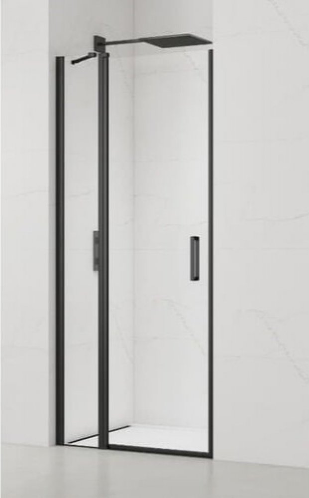 Sprchové dveře včetně nikového profilu v černém matném provedení, výplň je z čirého skla bez dekoru. Produkt je opatřen povrchovou úpravou Easy Clean, která usnadňuje čistění a minimalizuje usazování vodního kamene. Pivotový systém otevírání. Určení - levá i pravá orientace. ZÁRUKA 5 LET, dostupnost náhradních dílů 10 LET.