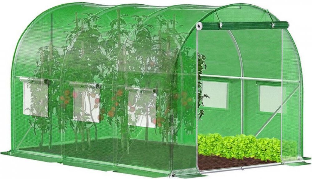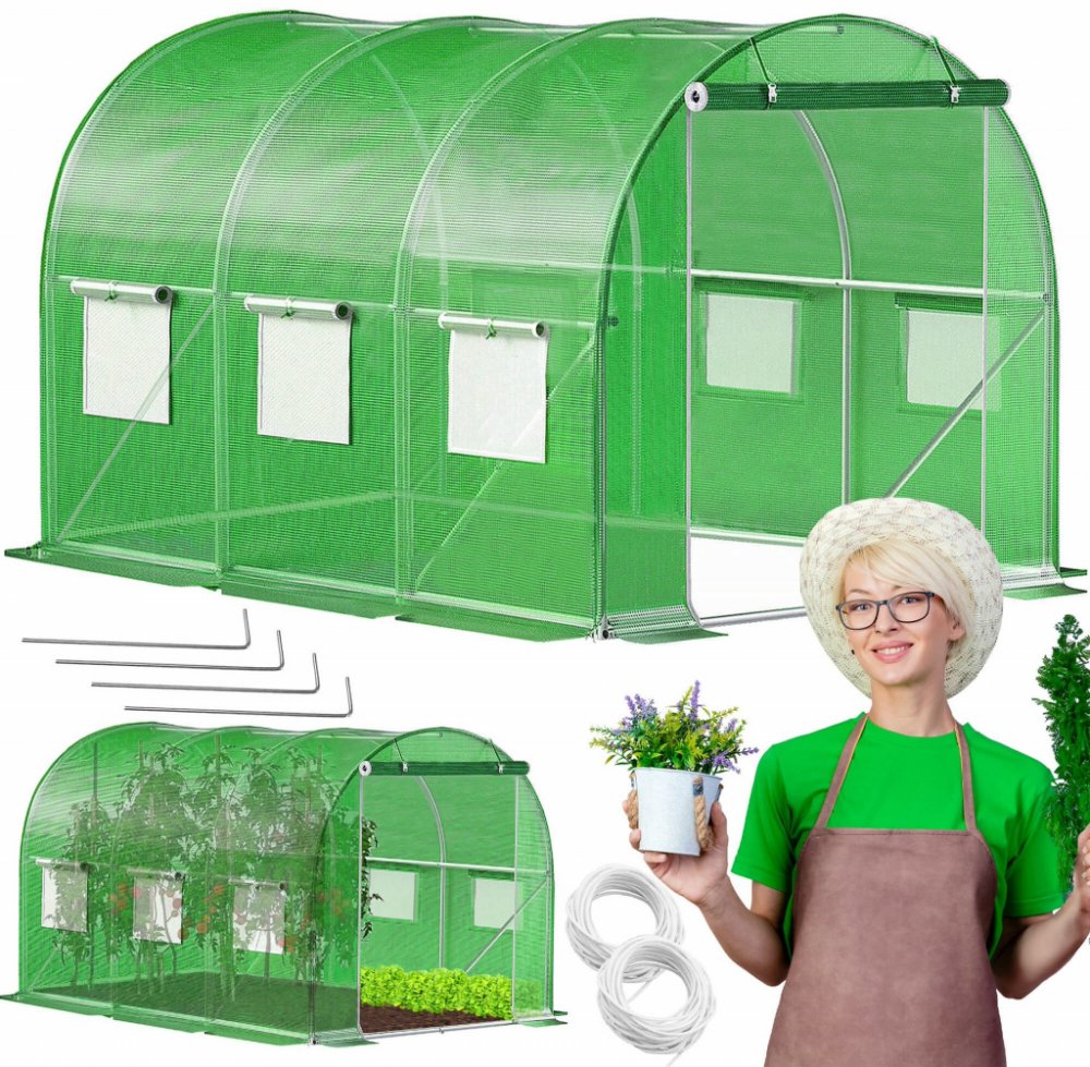 Perfektní pomocník na zahradu pro pěstování zeleniny. Fóliovník na rajčata, okurky, papriky a další plodiny poskytuje optimální podmínky pro jejich růst. Vysoce odolná fólie s UV ochranou, zesílená konstrukce se třemi výztuhami ve stropě a dvěma na bocích zajišťuje neobyčejnou stabilitu. Větrací síťovaná okna podporují správnou cirkulaci vzduchu, široký vchod s roletkou a zipem umožňuje snadný přístup. Obvodové kotvy se sňurkou zajistí pevné uchycení k zemi.