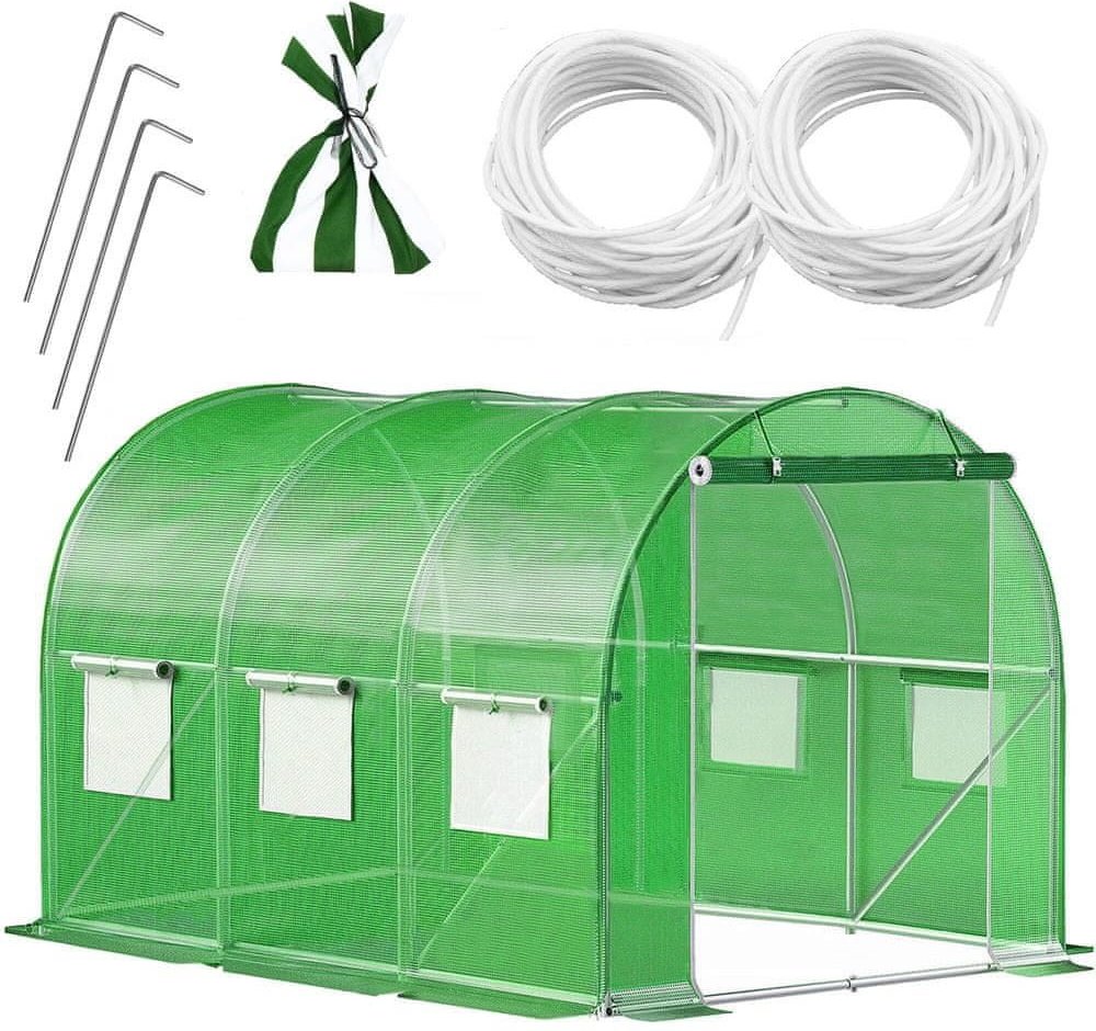 Praktické větrací síťovaná okna umožňují optimální cirkulaci vzduchu a regulaci vlhkosti. Široký vchod s roletkou a zipem usnadňuje přístup do fóliovníku, zatímco obvodové kotvy do země zajišťují pevné uchycení k podkladu. Tento fóliovník je skvělým pomocníkem pro každého zahrádkáře, který chce mít zdravou a bohatou úrodu po celou sezónu.