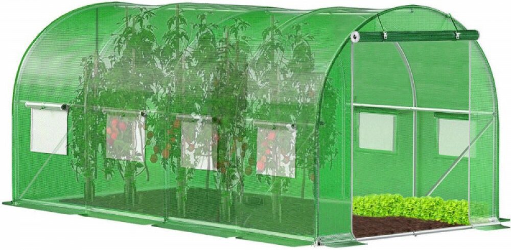 Perfektní pomocník na zahradu pro pěstování zeleniny. Fóliovník na rajčata, okurky, papriky a další plodiny poskytuje optimální podmínky pro jejich růst. Vysoce odolná fólie s UV ochranou, zesílená konstrukce se třemi výztuhami ve stropě a dvěma na bocích zajišťuje neobyčejnou stabilitu. Větrací síťovaná okna podporují správnou cirkulaci vzduchu, široký vchod s roletkou a zipem umožňuje snadný přístup. Obvodové kotvy se sňurkou zajistí pevné uchycení k zemi.