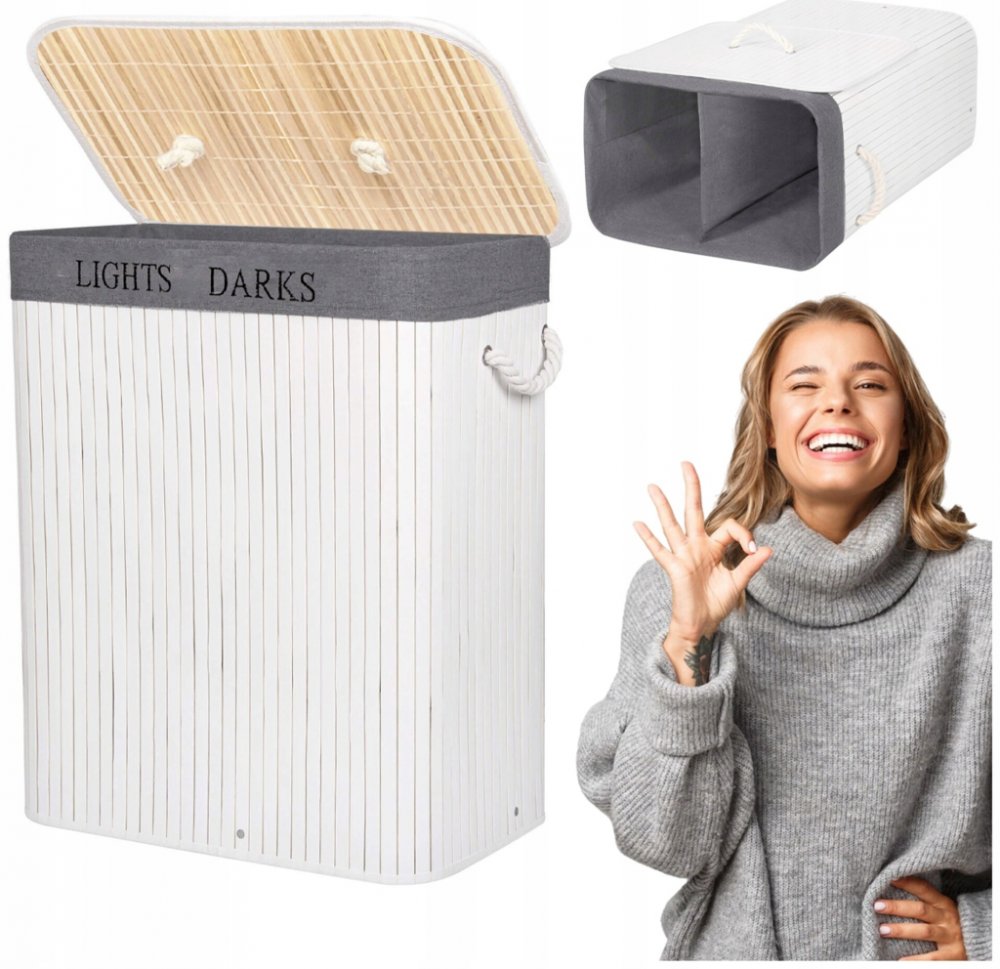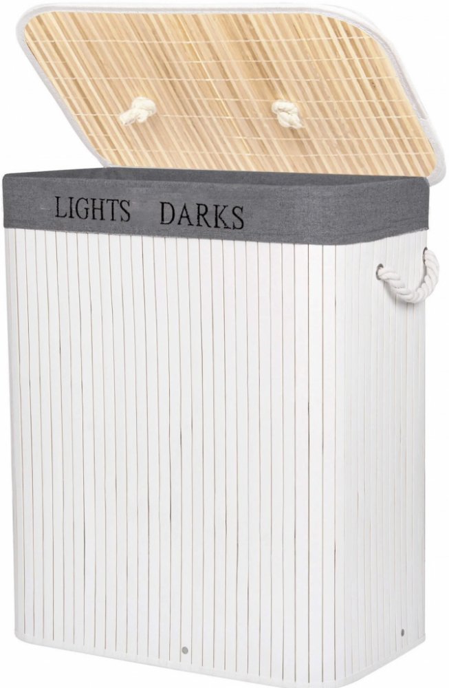 BAMBUSOVÝ KOŠ NA PRÁDLO DVOUKOMOROVÝ S VÍKEM, VELKÁ NÁDOBA 100 L