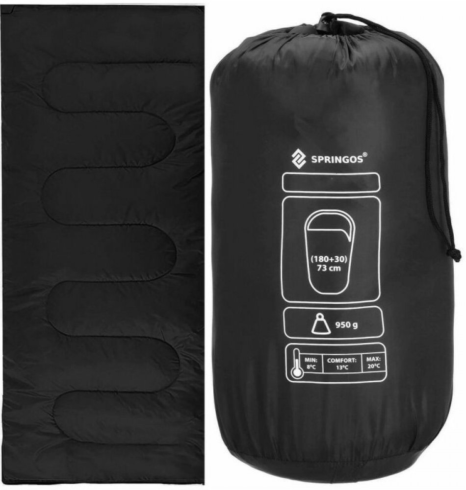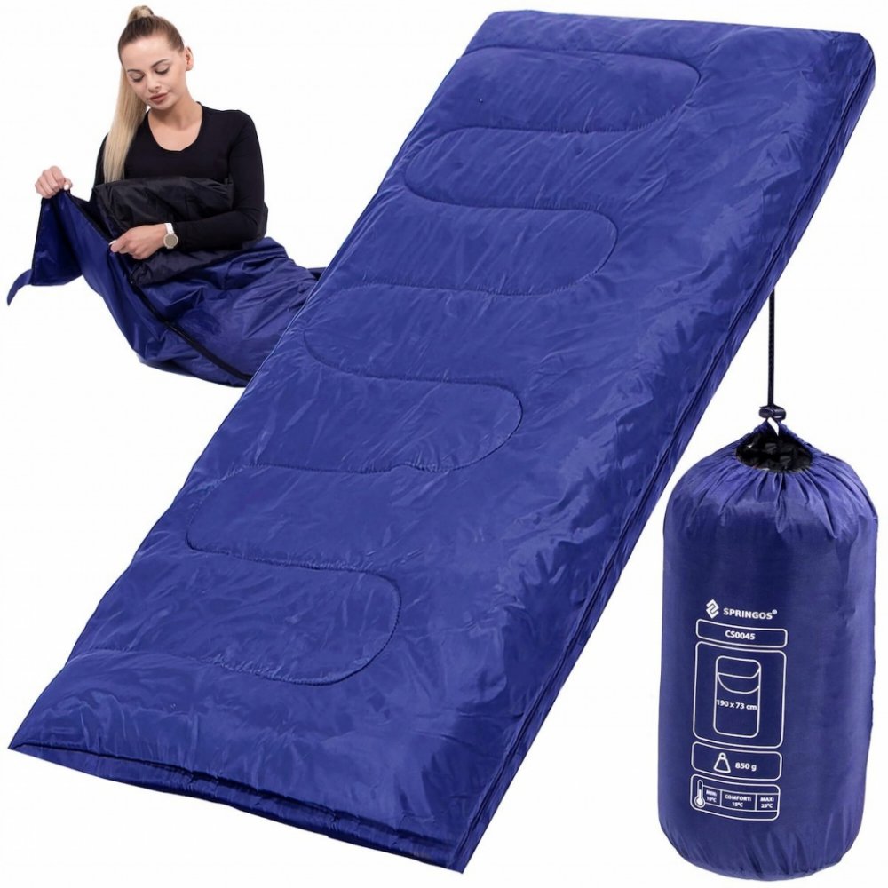 Kempingový spací pytel má syntetickou výplň, je odolný proti vlhkosti a velmi rychle schne. Díky použití membrány Hollow Fiber zaručuje spací pytel dobrou izolaci od země, udržuje teplo uvnitř a odvádí vlhkost ven. Kempování bez pořádného vybavení může skončit nachlazením a ranními bolestmi zad. Se spacím pytlem Springos se můžete spolehnout na dobrý spánek a regeneraci. Přeprava spacího pytle je snadná, protože výrobek je lehký a můžete jej vložit do přehozu. Spací pytel je ideální pro alergiky, protože má antialergickou výplň. Důležité je, že vnější polyesterový povlak se snadno udržuje v čistotě.