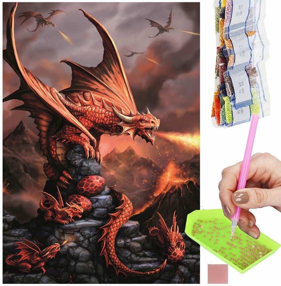 Informace o tomto článku DIAMANTOVÁ MOSAIKA: Umožňuje vytvářet obrazy pomocí barevných diamantů nalepených na plátně. Výsledkem jsou originální diamantové mozaiky, které se třpytí, lesknou a září! HOBBY: kreativní koníček a nový trend v tvůrčím trávení volného času. Malování diamanty je umělecká forma, která nevyžaduje žádné zkušenosti a umožňuje každému stát se umělcem TECHNIKA: Diamantová výšivka je velmi jednoduchá a vhodná pro každého. Obdržíte sadu se vším potřebným. Připravíte si samolepicí plátno s natištěným vzorem, na které budete diamanty lepit RUTENSTICKEREI: Vyberte si symbol, se kterým chcete začít, a vložte diamanty do zásobníku. Pomocí aplikátoru naberte trochu lepidla, lžičkou s ním vyjměte diamant a umístěte ho na příslušný symbol na plátně. Tento postup opakujte, dokud na plátno neumístíte všechny diamanty OBSAH: Získáte aplikátor, misku na diamanty, lepidlo a sáčky s diamanty. Každý sáček má svůj symbol, který je také na plátně. Vzor: Mozaikový drak 30 x 40 cm