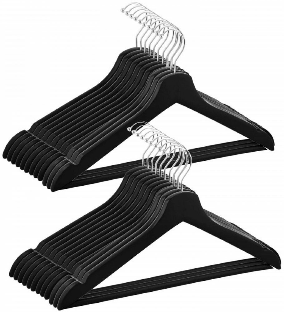 Dřevěná Ramínka Na Šaty Oblečení 42,5CM Sada 20KS Springos HG0058 Černá