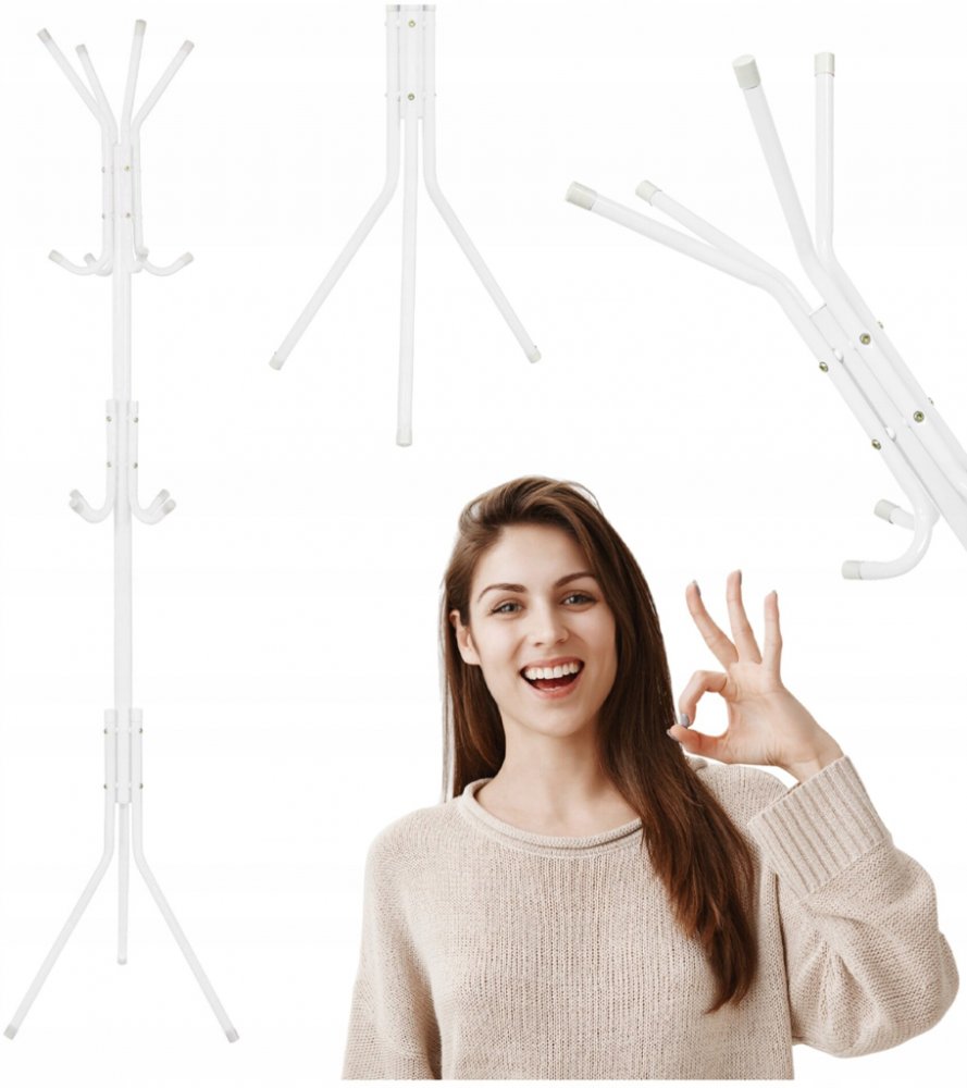 Svůj prostor si nejlépe uspořádáte se stojanovým věšákem SPRINGOS. Je vysoký 177 cm, v odstínu bílé barvy. Bude dobře fungovat v hale, kanceláři nebo předsíni. Vybaven je základnou na třech nohách, která je velmi stabilní. Zaoblené háčky s plastovým zakončením, elegantní povrchová úprava.