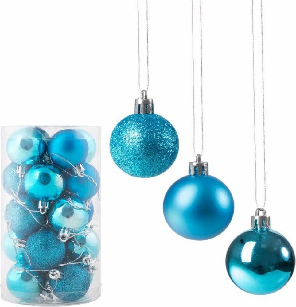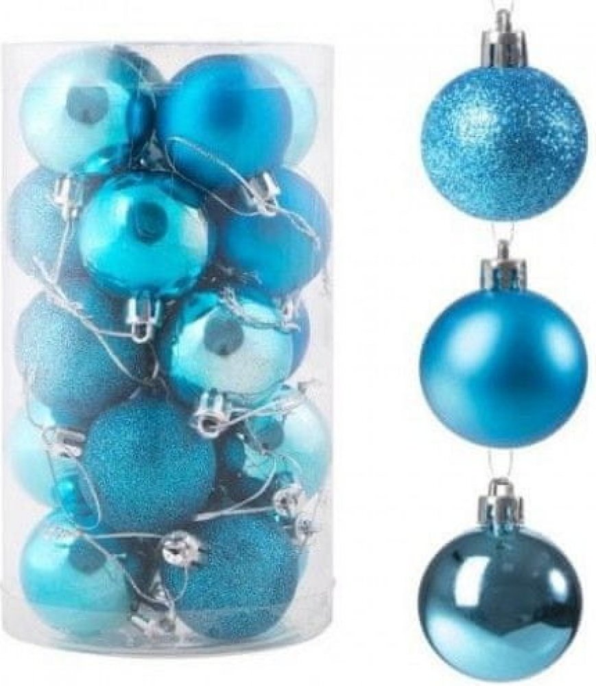 Sada 20 ks nebesky modrých baněk na stromeček s třemi různými vzory.Průměr baňky 4 cm, poutko na zavěšení, nerozbitný plastový materiál. Ideální k výzdobě stromečku nebo jako vánoční dekorace. provázky pro snadné zavěšení.Sada nebesky modrých baněkBaňky jsou vyrobeny z kvalitního nerozbitného plastu a svým provedením věrně připomínají skleněné dekorace. Oproti nim jsou však mnohem odolnější a bezp...