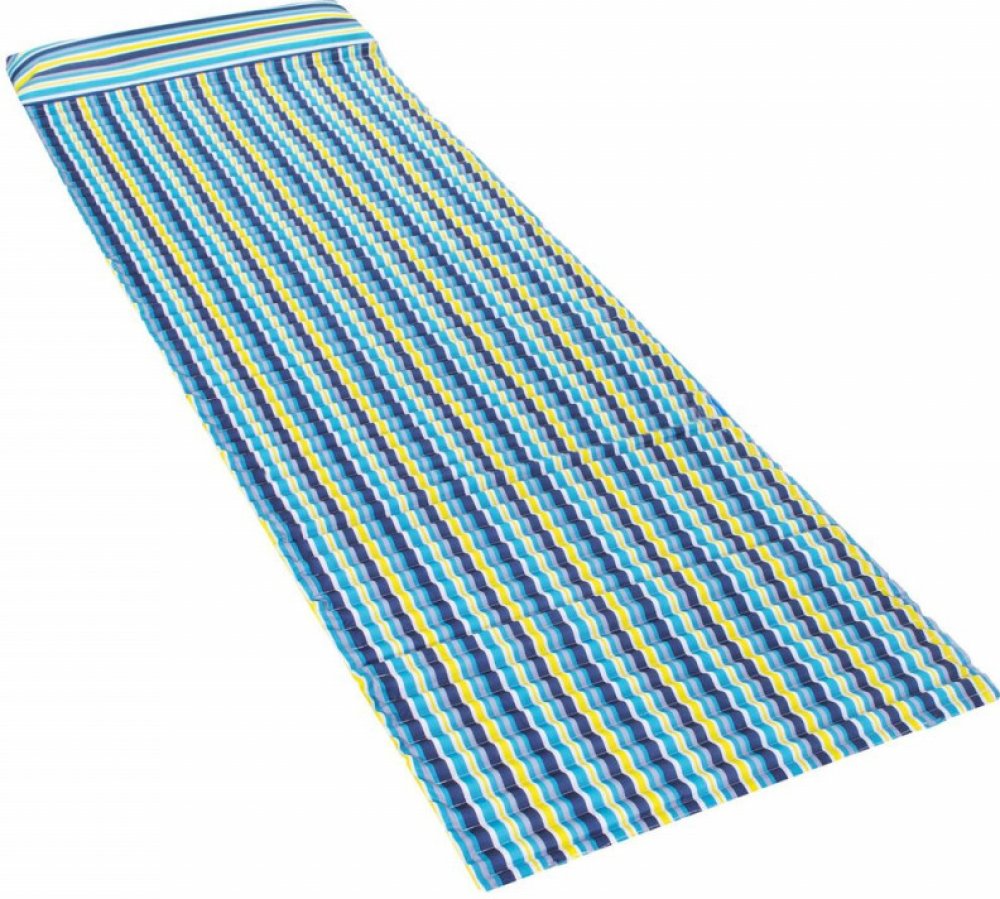 Plážové lehátko s polštářem má odolný materiál a pěnovou výplň, která zajistí komfort i na tvrdších površích, vhodné i na kameny. Polštář naplněný kuličkami se přizpůsobí tvaru hlavy. Díky lehké a skladné konstrukci s rukojetí na přenášení ji snadno vezmete kamkoliv s sebou. Navíc nabízí snadnou údržbu, takže si bez starostí užijete každé letní dobrodružství. Rozměry 180x60 cm.