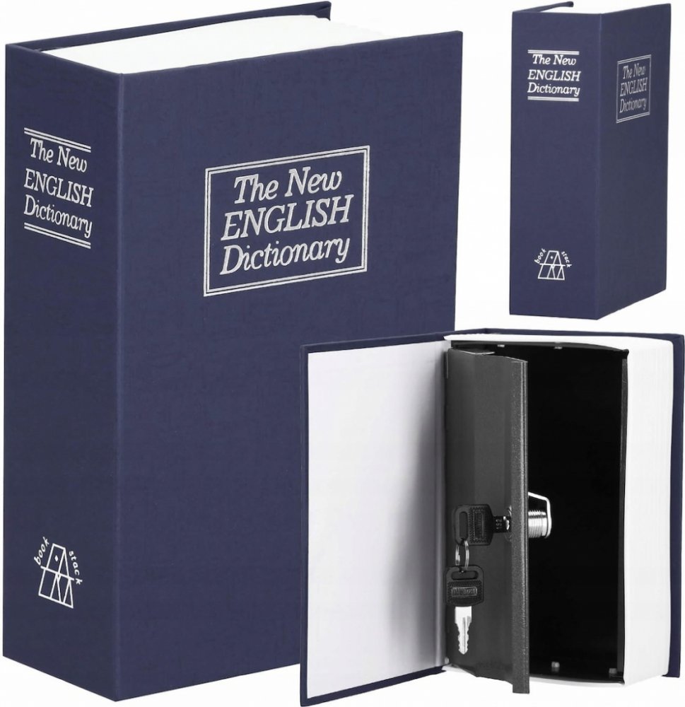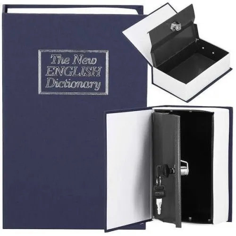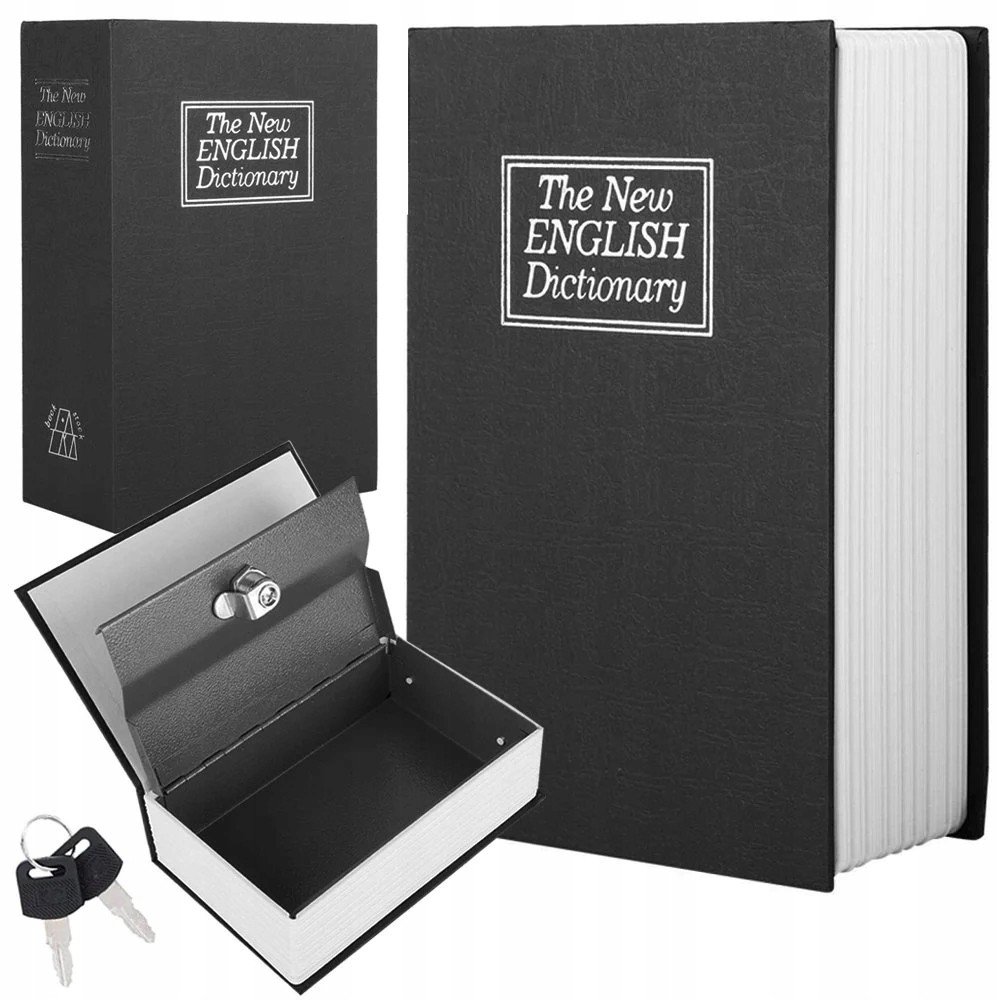 Kovová bezpečnostní schránka na klíč napodobující běžnou knihu. Rozměry 16x11,5x5,5 cm. Originální design s důmyslným maskováním. Detailní zpracování, odolné a bezpečné provedení. Perfektní místo pro uložení hotovosti nebo jiných cenností.