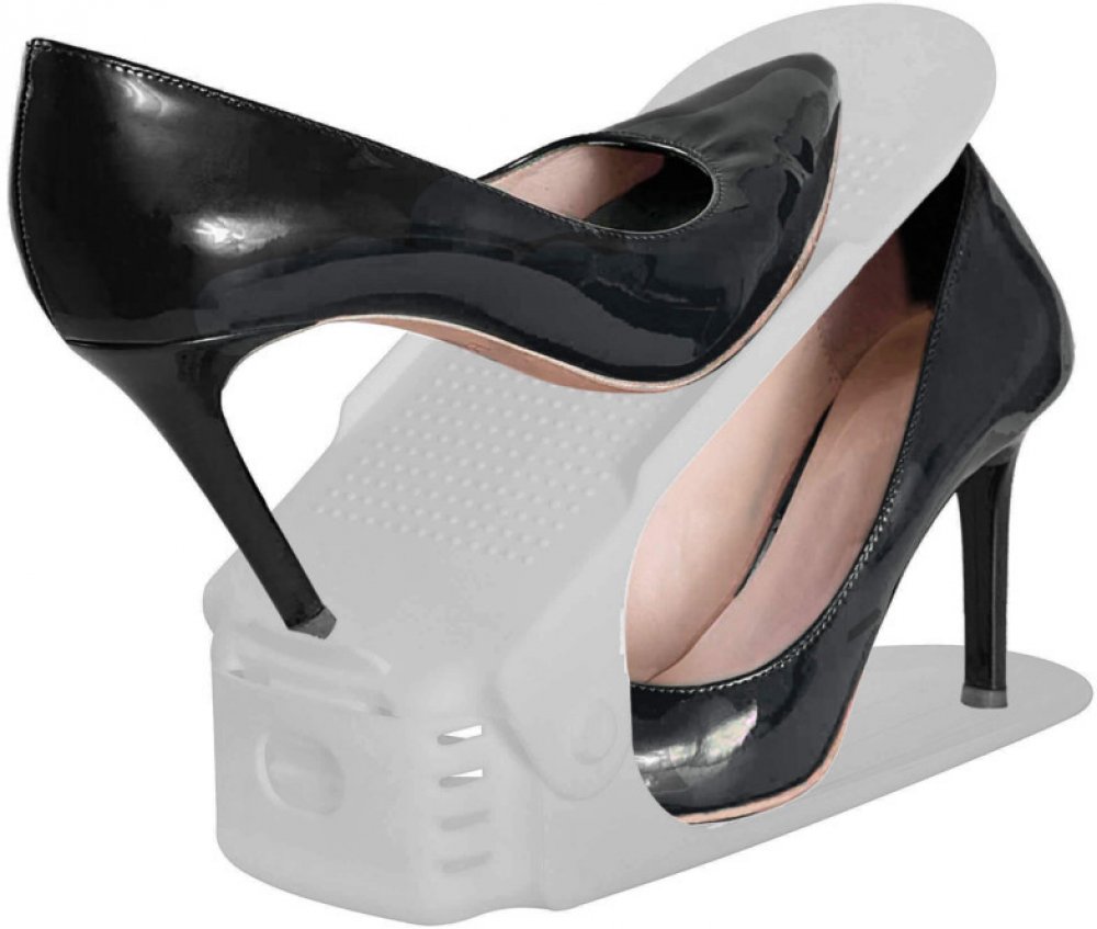 Plastový držák na obuv, se kterým ušetříte polovinu místa a v botníku budete mít opět dokonalý přehled a pořádek. Vhodný pro většinu typů obuvi do velikosti 43.Organizér nejen šetří místo, ale i chrání boty před poškozením a ušpiněním. Protiskluzový povrch a zarážky zajistí, že z něj boty nesklouznou a budou držet na svém místě. Díky nastavitelné výšce ho můžete použít jak pro pantofle, tak i vych...