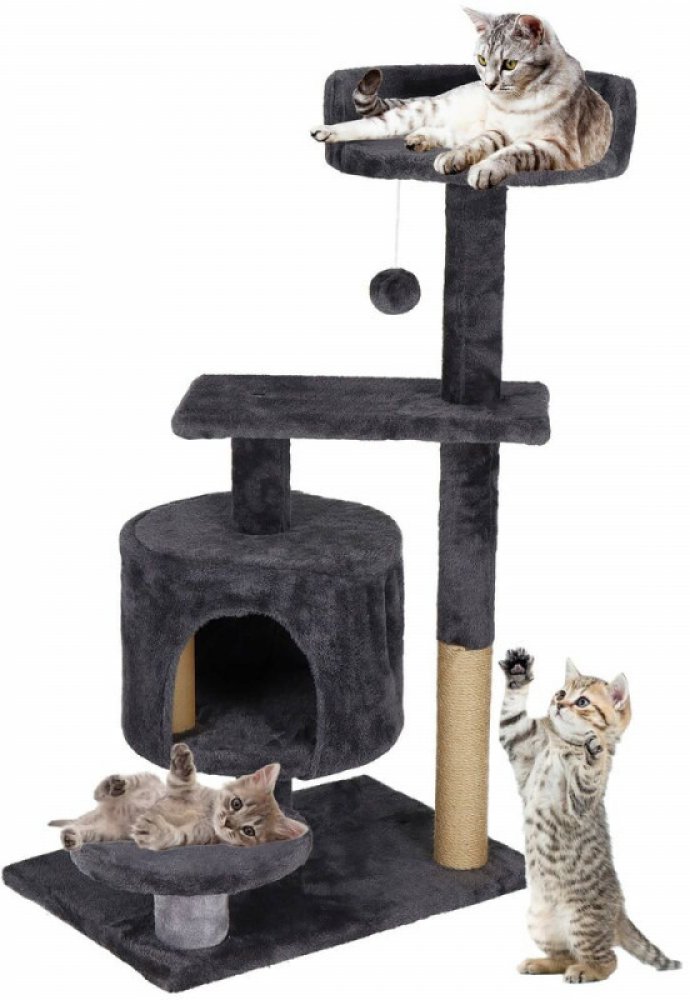 Víceúrovňové kočičí škrabadlo s 5 patry, ideální pro aktivní kočky. Pokryté na dotek příjemným potahem, který je pohodlný pro odpočinek. Škrabadlo je vysoce stabilní a odolné, což zajišťuje dlouhou životnost. Součástí je sisalový sloupek, který kočkám poskytuje ideální povrch pro škrábání, a chlupatý míček na provázku, který podporuje jejich hravost.Škrabadlo pro kočky Domeček s míčkem 5 pater 87 ...