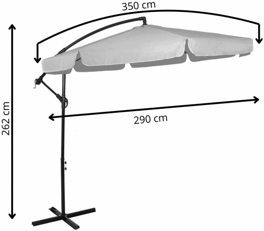 - Šírka materiálu dáždnika (vrátane volánov): 350 cm