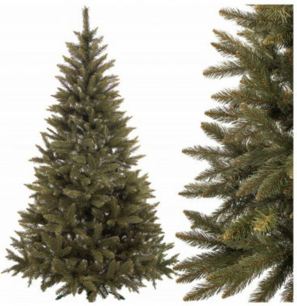 Umělý vánoční stromeček se stojanem a realistickým vzhledem Kavkazského smrku. Rovnoměrné rozložení jehličí bez mezer, rozmanitost zakončení větviček, přirozená barva pravého smrku. Výška stromku 180 cm, spodní šířka 100 cm, stabilní čtyřramenný stojan o průměru 55 cm.