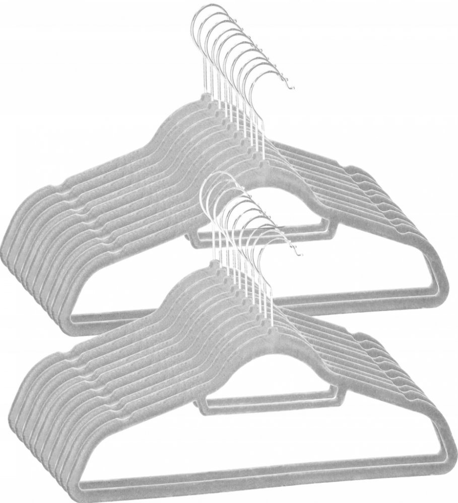 Velurová šatní ramínka v šedé barvě, sada 20 ks. Vhodná na šaty, košile, kalhoty a další oblečení. Samet...