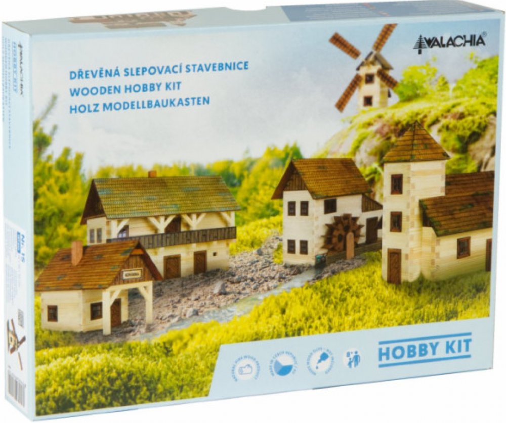 Ve stavebnicích HOBBY KITS naleznete vše potřebné k sestavení. Ke stavbě slouží jednoduché obrázkové návody se symboly jednotlivých úkonů, a proto je můžou sestavovat děti po celém světě. Základním stavebním materiálem jsou přesně zhotovené hranoly z borového dřeva a rozměru 9×9 mm v délkách od 16 do 230 mm určených ke stavbě roubených stěn. Plochy střech, štítů, pavlačí a teras jsou zhotoveny z překližky 3 mm a polepují se papírovými potisky. Funkční dveře a okna zasklená folií jsou z potisklého kartonu. Jednotlivé stavby se slepují lepidlem na dřevo a papír (není obsahem). Součástí návodu jsou malé kapitoly ze stavebního oboru a historie lidové architektury. Modely staveb jsou v měřítku 1:32.