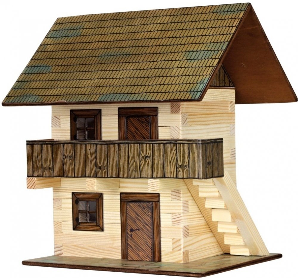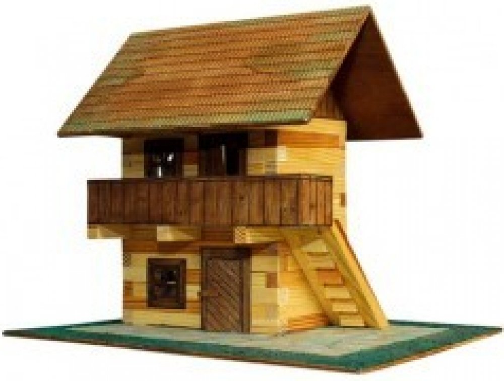 Dřevěná slepovací stavebnice obsahuje dřevěné hranolky daných délek ke stavbě roubených stěn, díly na střechy a štíty, kartonové výseky oken a dveří i předtištěné papírové potisky. Součástí stavebnice je schematický montážní plán.