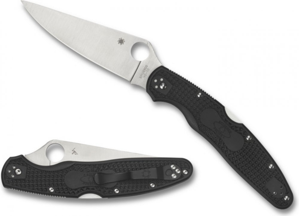 Spyderko zavírací 112 mm 253 mm 3 mm 119 g 14.3 cm Nerezová ocel VG-10 pro náročnější úkony (≥ 9 cm) do běžně velké kapsy rychlé otevření Nylon vyztužený skleněnými vlákny s vysokou odolností proti vlhkosti s otvorem pro palec s částečně pilovitým ostřím