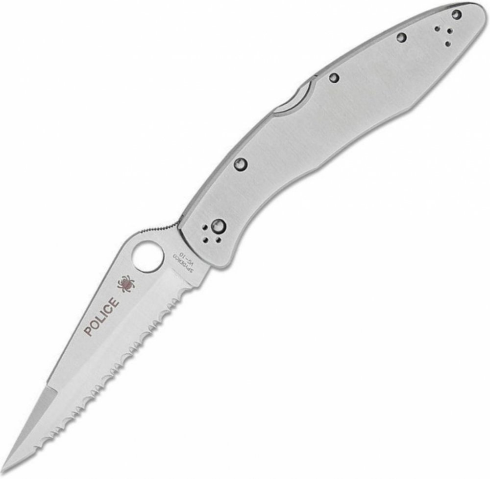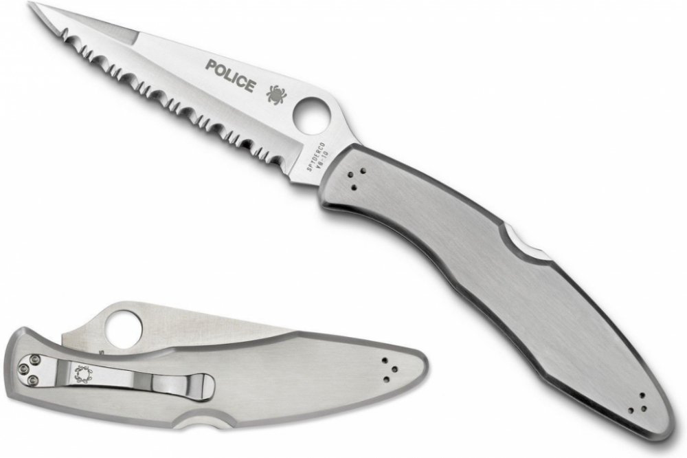 Policejní model má na rukojeti vyřezaný oblouk, pro lepší zatlačení pojistky a výrazně zamezuje náhodnému uvolnění zámku. Čepel je z oceli VG-10 a je zubatá po celé délce. Rukojeť je vyrobena z nerezavějící oceli a je ideální na gravírování nebo případné ozdobení. Ocelový klip je čtyřpolohový.