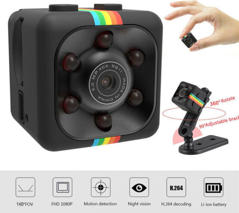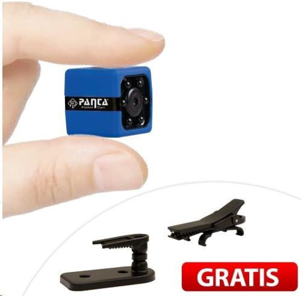 Kamera poskytuje velmi kvalitní rozlišení obrazu u videa i fotografií. Malé rozměry jsou naprosto ideální pro hlídání vašeho domova před zloději. Kamera podporuje paměťové micro SD karty s kapacitou až 32 GB, čočka zobrazuje úhel až 140°. Je vybavena automatickým přepisováním starých záznamů a detekcí pohybu. Balení obsahuje otočný stojan s klipem, USB/TV kabel pro nabíjení nebo připojení k obrazovce.