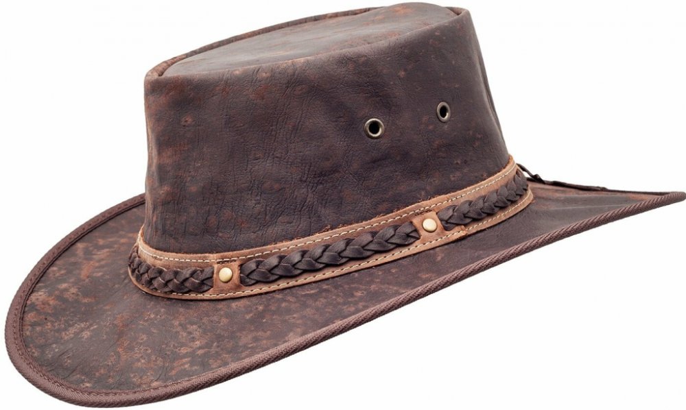 Kožený klobouk nese přírodní stopy, jako lehké škrábance, jizvy apod. jsou autentické díky drsné divočině pátého kontinentu, tvoří originalitu výrobku a jsou považovány za přirozenou vlastnost. Kamenná struktura kůže a výrazný dvoubarevný pásek na klobouku završují jedinečný vzhled této klasiky!