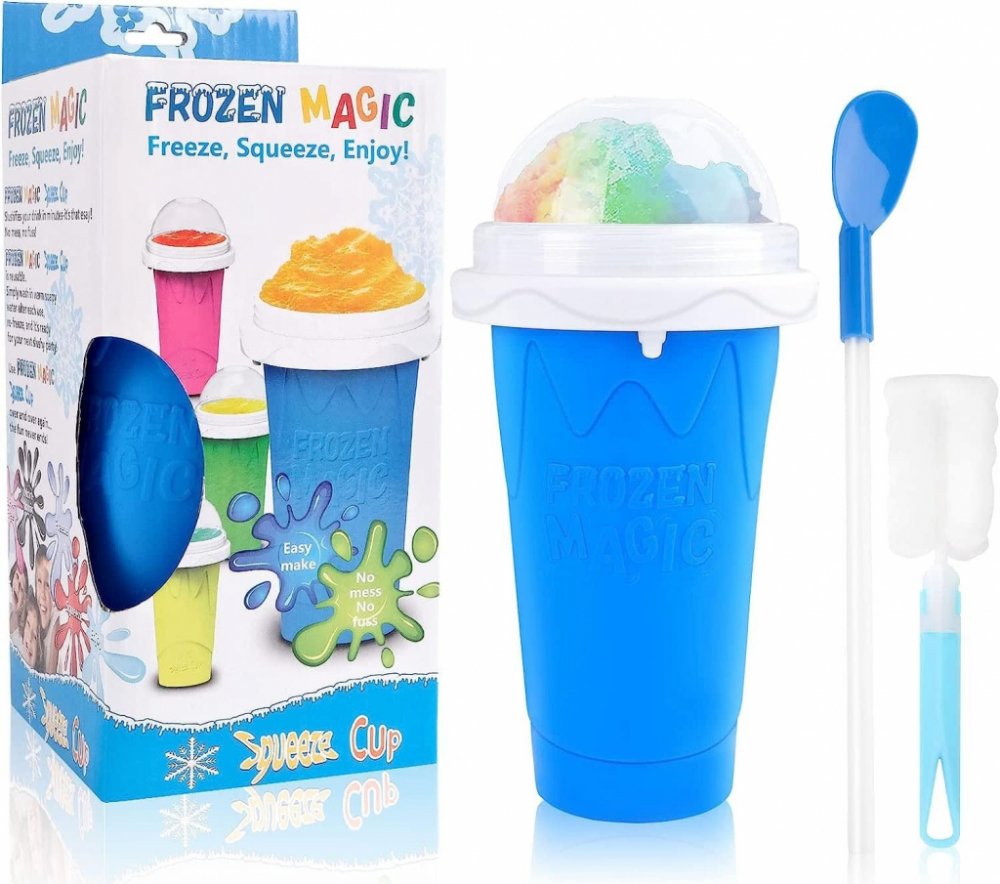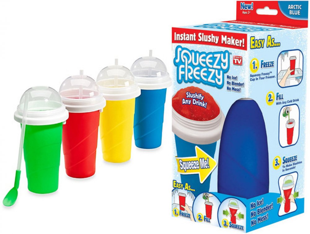 Osvěžit se ledovou tříští již nikdy nebude jednodušší! Stačí vložit kelímek Squeezy Freezy do mrazáku, poté do něj nalít oblíbený nápoj, promačkat a ledová tříšť je na světě! Perfektní osvěžení pro celou rodinu. Podrobnosti:kelímek na výrobu ledové tříště rychlé a snadné osvěžení vyrobí tříšť z čehokoliv: džusu, šťávy, čaje, energetických nápojů, atd. velice jednoduché použití - zvládnou i malé dětisoučástí balení je kelímek s víčkem a praktické brčko se lžičkou Jak na to:1) kelímek vložte na několik hodin do mrazáku2) do zrmzlého kelímku nalijte oblíbený nápoj 3) opakovaně mačkejte kelímek, dokud se z nápoje nestane tříšť
