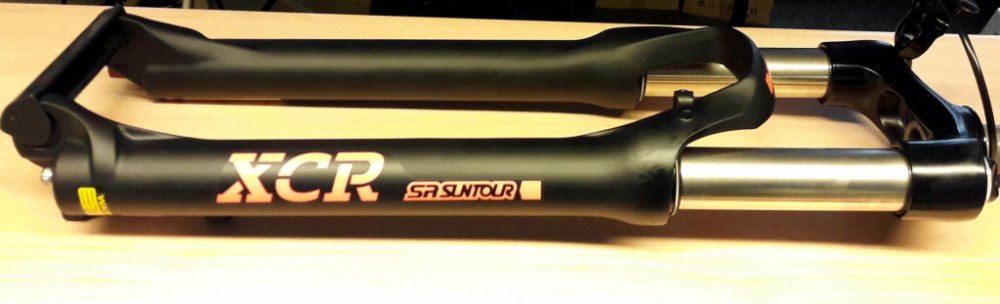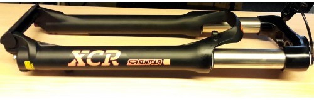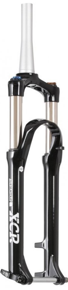 "SR Suntour XCR 32 Air RL-R je 29" MTB vidlice se zdvihem 100 mm a uchycením kola na pevnou osu 15x100 mm. Pružení zajišťuje vzduchová komora a o tlumení se pak stará olejová patrona. Vidlice je uzpůsobena pro brzdové třmeny kotoučových brzd, standard Post Mount. Uzamčení pružení vidlice je páčkou z řídítek, která je i součástí balení. Sloupek je 1 1/8" v délce 255 mm a vidlice váží 2350 g.
