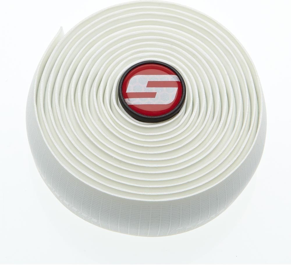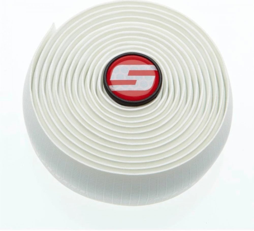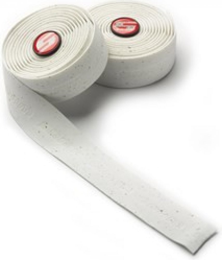 "Klasická korková omotávka pro silniční řídítka, model SuperCork, bílá barva s vytlačenými logy výrobce, včetně záslepek.