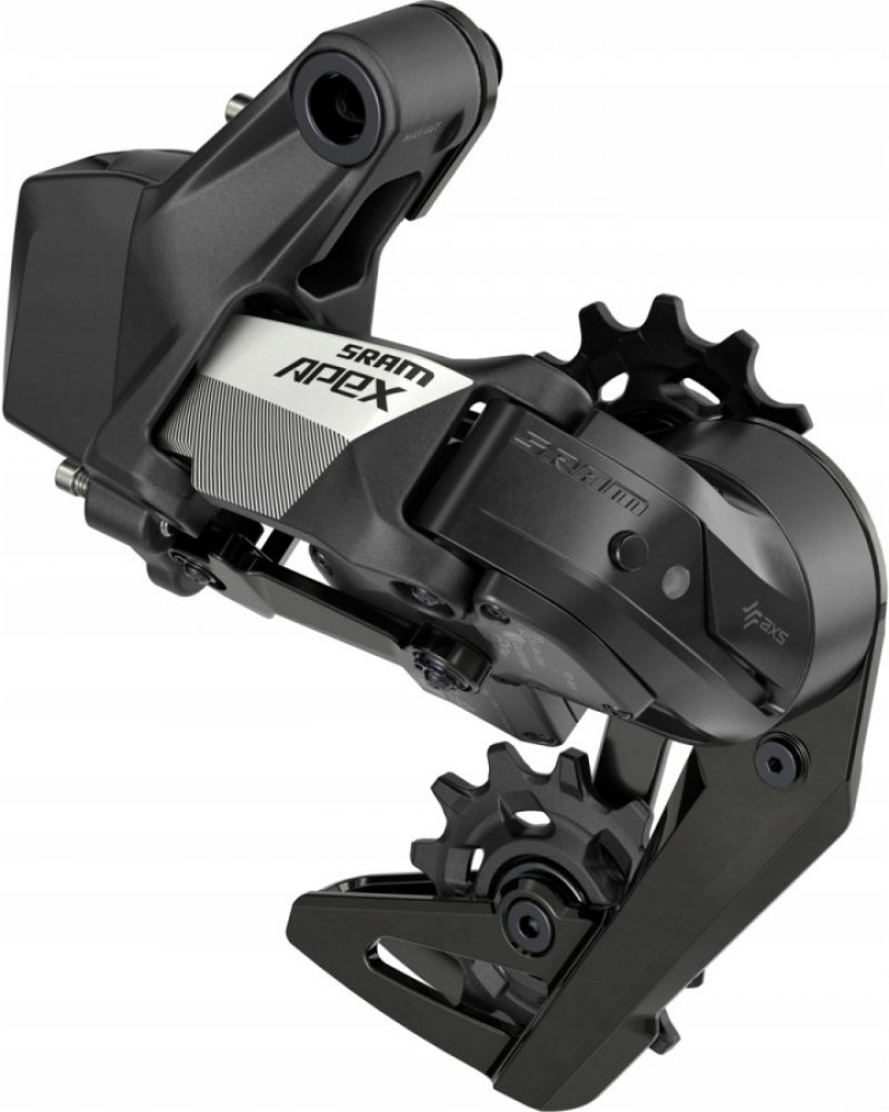 "Elektronická přehazovačka Sram Apex AXS s XPLR delším vodítkem a konstrukcí, která pasuje na širokorozsahové kazety s velkými pastorky 36 zubů a 44 zubů.