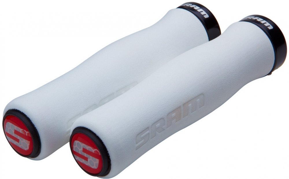 SRAM Locking gripy pěnové, 129mm bílé s jednou černou objímkoua koncovkami řidítek