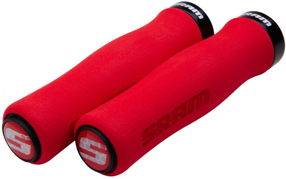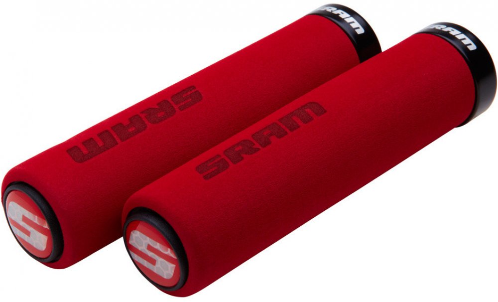 SRAM Locking gripy pěnové, 129mm černé s jednou červenou objímkou a koncovkami řidítek