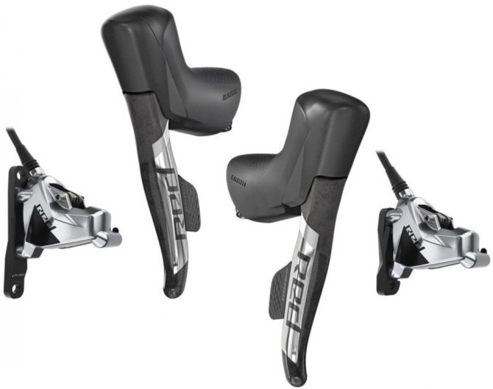 "Samostatná rádící a brzdová páka Sram Red eTap AXS pro kotoučovou brzdu a 2x12 rychlostní řazení eTap AXS. Levá - přední. Kapalina DOT 4 a DOT 5.1.